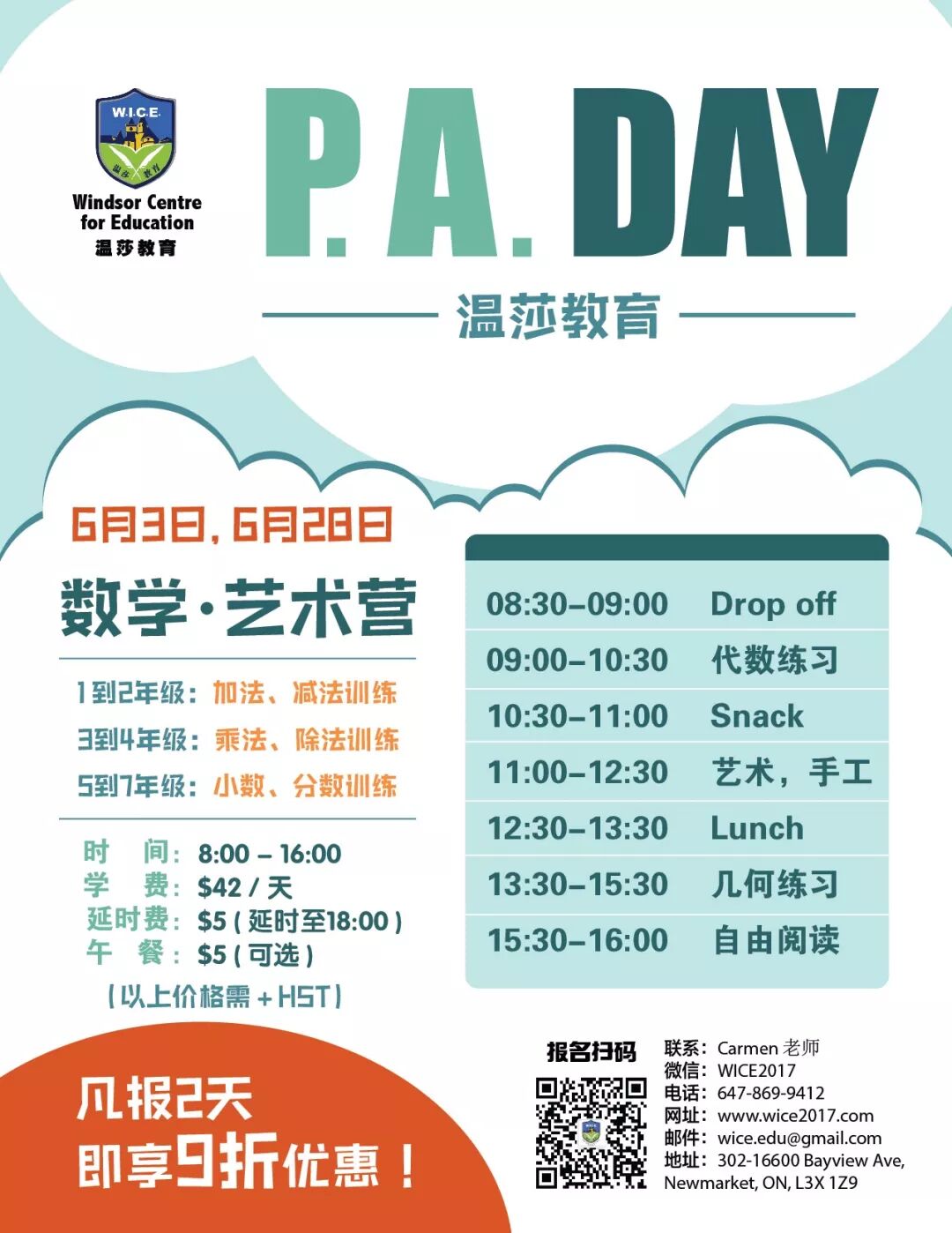 现在不用再担心啦!温莎教育中心长期在PA Day开办数学训练营,为您的孩子预备美好的一天。